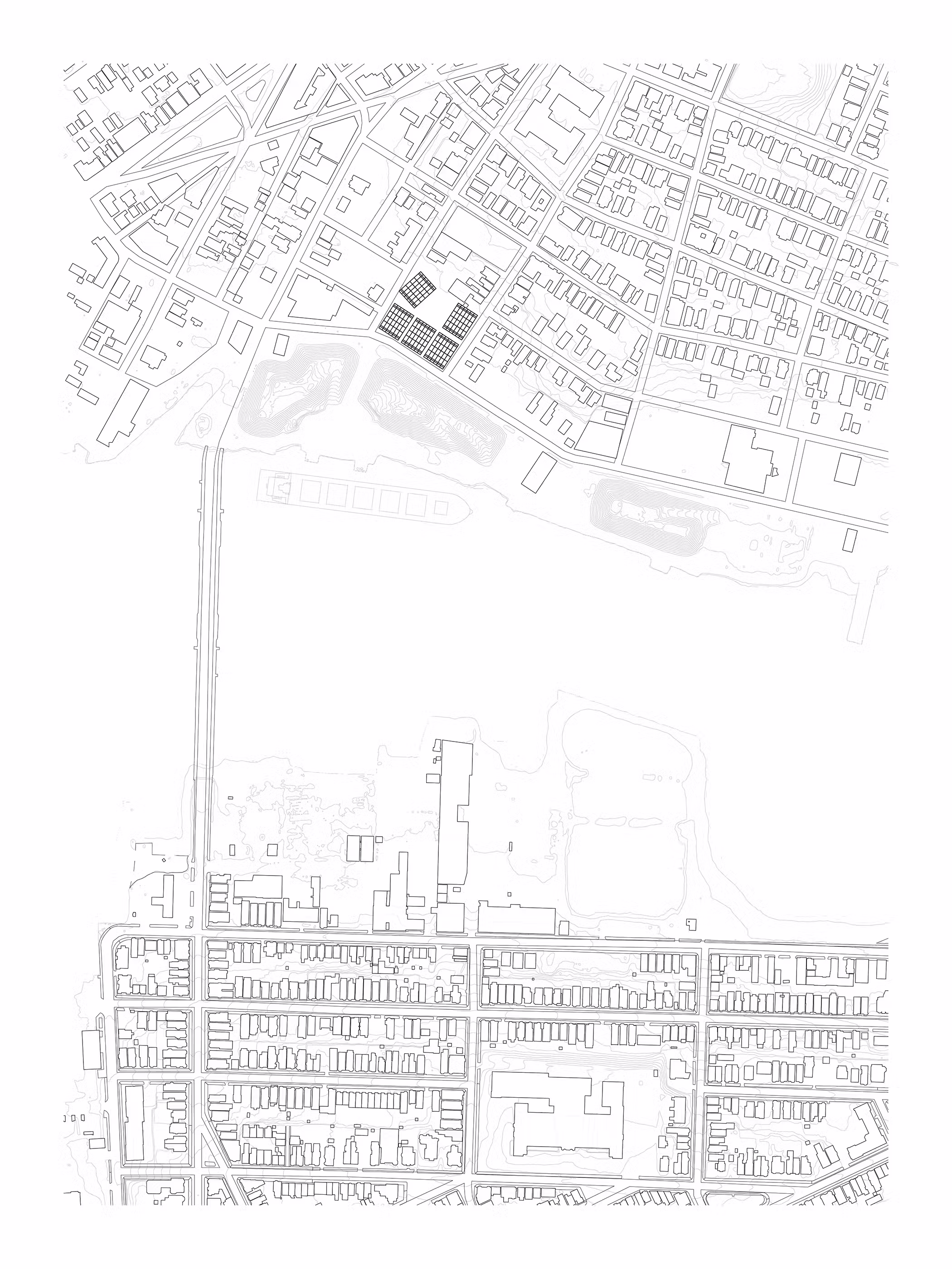 With the ground released, smaller, lighterweight structures can spring up. Three smaller-scale annex buildings punctuate the site with valuable services: a café with indoor and outdoor seating, a daycare to support working families, and a laundromat as both a utility and informal gathering space. Over time, more buildings could rise here, and modest, site-specific solutions could respond to future needs. The ground is not just open; it is generative.