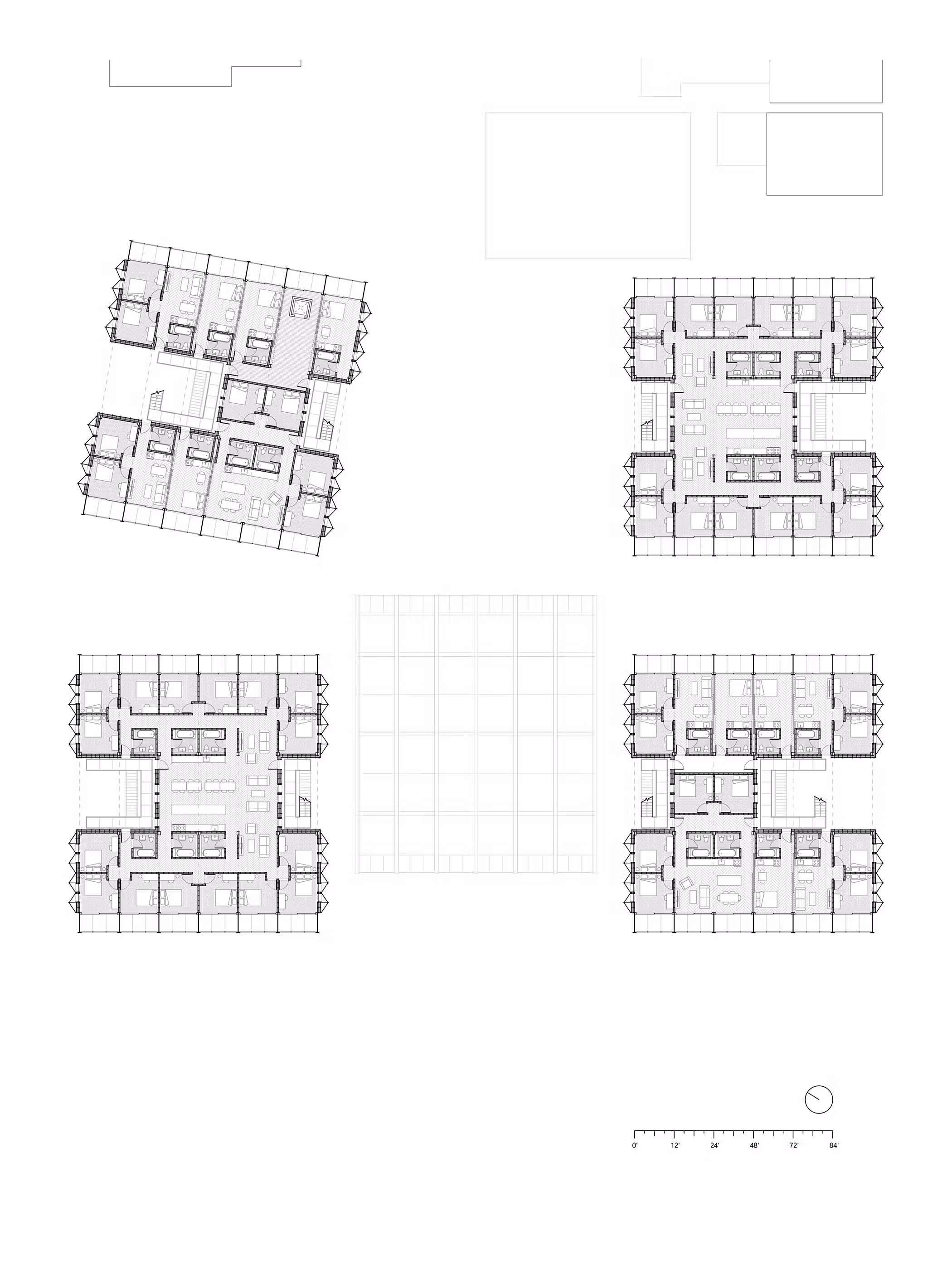 Finally, the top left building is turned outward, the basketball court opening itself to the public street, welcoming all to enter. A widened entrance to the access-way is created by this 10 degree rotation inviting Chelsea to participate.