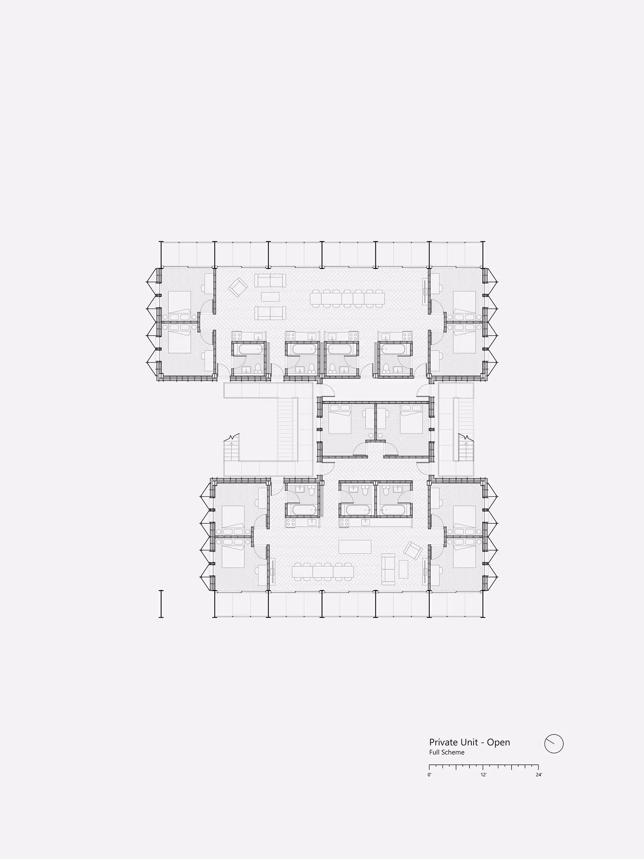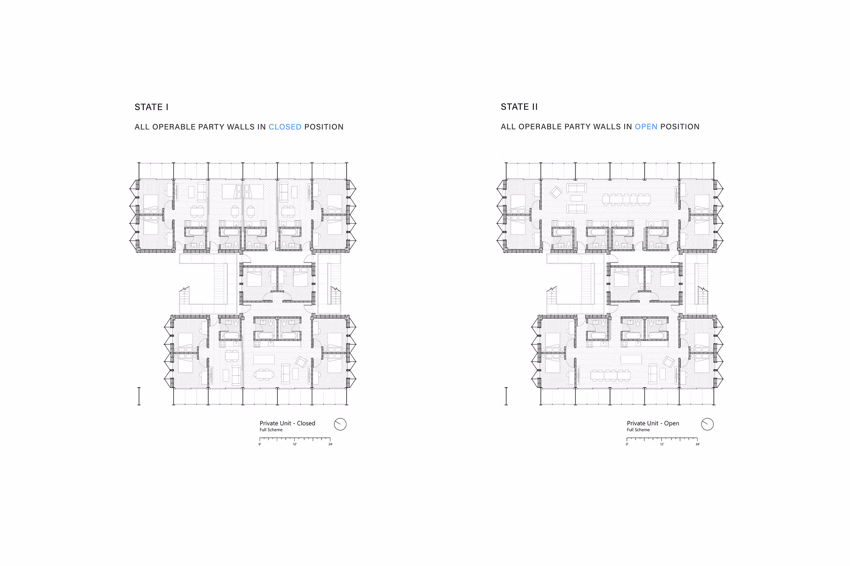 The immense structural integrity of the cargo holds allows for two primary affordances: Opening the ground to the public and elasticity within the private spaces. Floor Plates are suspended from steel columns in tension, allowing the burden of the indoor program to rise to the upper fl oors and the ground level to remain open for public and communal use.